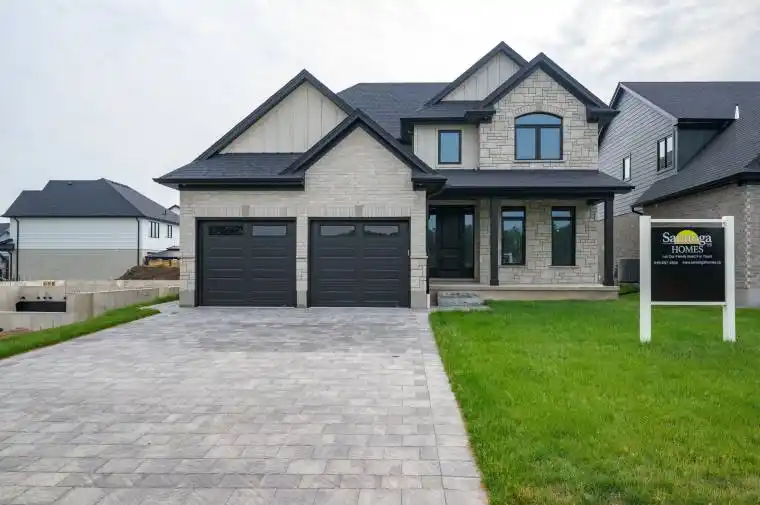 TAKE ADVANTAGE OF CURRENT SARATOGA INCENTIVES! Step into this beautifully designed 2,655 sq. ft. two-storey Durham plan by Saratoga Homes, where classic style meets modern convenience. The stunning stone and brick front facade, along with the covered front porch, creates an inviting curb appeal that is both timeless and elegant.Inside, the gourmet eat-in kitchen is a chef’s dream, featuring a stunning 6-foot island, ideal for cooking and entertaining. Adjacent to the kitchen, a well-appointed butlers area with a walk-in pantry seamlessly connects to the formal dining room, making hosting a breeze.Upstairs, youll find a thoughtfully designed layout, complete with a convenient second-floor laundry room. The luxurious master bedroom boasts a spa-like ensuite with a 6-foot soaker tub, a spacious 5-foot shower, and a walk-in closet that offers ample storage.This home combines a beautiful exterior with a functional, elegant interior perfect for modern family living. Contact us for more plans and lots available! ASK ABOUT HUGE INCENTIVES ON OUR OTHER LOTS!