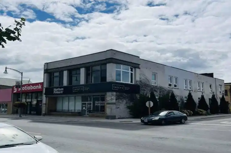 Modern second floor 3,000 sqft office space available in a well-maintained building with prime downtown exposure. Features include 11 large offices with built-in desks, glass partitions, exposed brick accents, high ceilings, and windows that provide natural light. This office space was completely renovated in 2022 with upgraded finishes throughout. This space would be ideal for professional services, creative businesses, or firms seeking a strong downtown presence. Parking spots available for a fee.