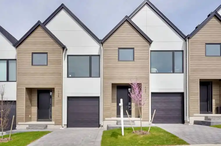 Beautiful modern townhome unit, ideally located in the highly sought-after Warbler Woods neighbourhood. This stylish interior unit offers 1750 sqft of thoughtfully designed living space, featuring 3 spacious bedrooms, 2.5 bathrooms and premium upgrades throughout. Step inside to discover an open-concept main floor boasting 9′ ceilings, 8′ doors, large windows and engineered oak flooring. The kitchen offers stainless steel appliances, custom cabinetry, quartz counters, large island with seating and pantry for added storage. Upstairs, you’ll find a convenient laundry area along with 3 generously sized bedrooms and 2 full bathrooms. The primary suite is your private retreat, complete with hardwood flooring, walk-in closet, and gorgeous ensuite featuring quartz counters, double vanity, and glass shower. Step outside to your fully fenced backyard with a deck, perfect for outdoor hosting. Additional features include single-car garage with inside entry, private driveway, motorized shades on all windows for privacy, and unfinished basement ready for your personal touch. Located close to top schools, shopping, dining, parks, walking trails, and easy highway access, this home is perfectly situated for modern family living! *Photos are of a previous model with same layout and finishes (some variations in colour).