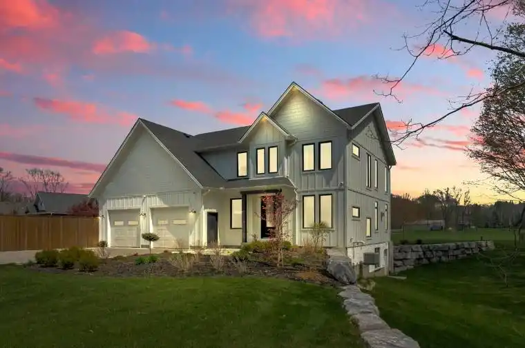 This stunning custom-built home blends modern elegance with practical living, offering high-end finishes and generous space inside and out. From the moment you enter the bright, welcoming foyer, you’re greeted by an oversized walk-in closet that doubles as a mudroomperfect for keeping everything organized. Just off the entryway, a spacious home office offers an ideal work-from-home setup, complete with ample lighting and wiring for a multi-camera security system. The main floor boasts an airy open-concept layout with vaulted ceilings and striking cathedral windows that flood the living room with natural light. A propane fireplace adds warmth and charm, creating a perfect space for both relaxing and entertaining. At the heart of the home is a chef-inspired kitchen featuring a massive quartz island that serves as a prep area and social hub. High-end appliances include a five-burner gas cooktop, double wall ovens, a stainless steel refrigerator, and a matching dishwasher. Thoughtful details like a pot filler, soft-close cabinetry, custom lighting, and a separate canning/prep room enhance both style and function. The adjoining dining area overlooks the private backyard and tranquil ravine, offering a beautiful setting for everyday meals and special gatherings. Upstairs, you’ll find three spacious bedrooms, a full bathroom, and a convenient laundry room. The luxurious primary suite features a walk-out balcony with peaceful views of a nearby horse paddock and hot tub, perfect for quiet mornings or evenings. The spa-like ensuite includes a deep soaker tub, double rainfall shower, and large walk-in closet for a true retreat experience. The fully finished basement offers even more living space, with a large family room, fourth bedroom, and full bathroom ideal for guests or extended family. Additional highlights include heated garage floors, premium finishes throughout, and a serene, natural setting that offers privacy and beauty.