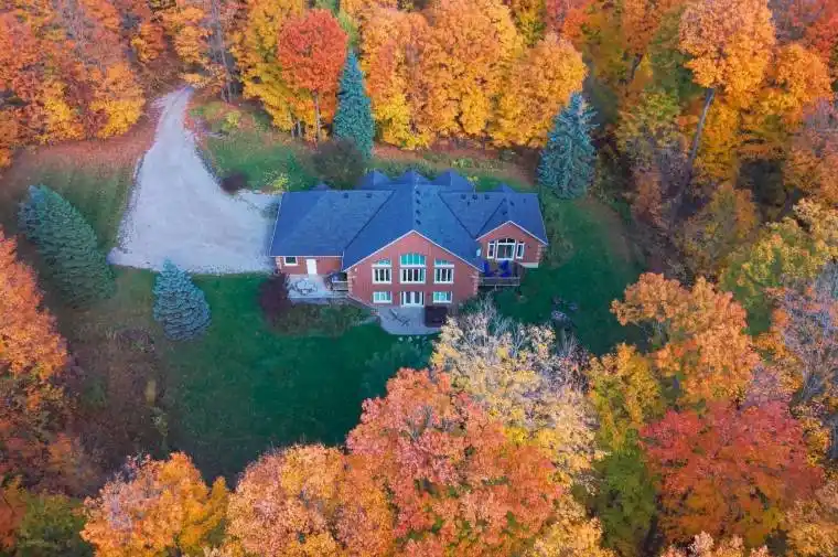 Luxury estate bungalow set on 10 acres of complete privacy in South Adjala, blending modern convenience with the freedom of country living. Everything you need is minutes away in Tottenham and Schomberg; it’s an easy commute via 400 or 50 and only 45 minutes to YYZ. The winding drive leads through the forest to a residence where luxury meets nature, complete with high-speed fibre-optic internet and natural gas. Inside, more than 5,000 sq. ft. of airy, light-filled space invites you to slow down and savour the views. Expansive floor-to-ceiling windows capture the beauty of every season, while hardwood floors, soaring cathedral ceilings, and four fireplaces create an atmosphere that is both refined and welcoming. The heart of the home is an open design with 16-foot cathedral ceilings, a custom chef’s kitchen with premium built-in appliances, family and dining areas surrounded by expansive windows with walkouts to multiple decks, perfect for entertaining . The primary suite is your private haven, featuring a spa-inspired ensuite, walk-in closet, ensuite laundry, and a walkout where morning coffee comes with fresh air and tranquillity. The lower level is designed for connection and celebration, offering a family room with a wet bar, a glowing fireplace, and walkouts to a hot tub and patio for evenings under the stars. Guests or family will feel at home in spacious bedrooms, while ample storage ensures comfort and functionality. Outdoors, the property is a true sanctuary. The forest and landscaped perennial gardens burst with colour through the seasons, butterfly habitats bring life and movement, and private trails wind through mature woods. Enjoy peaceful moments in the screened gazebo, watch the birds, or breathe in the stillness.