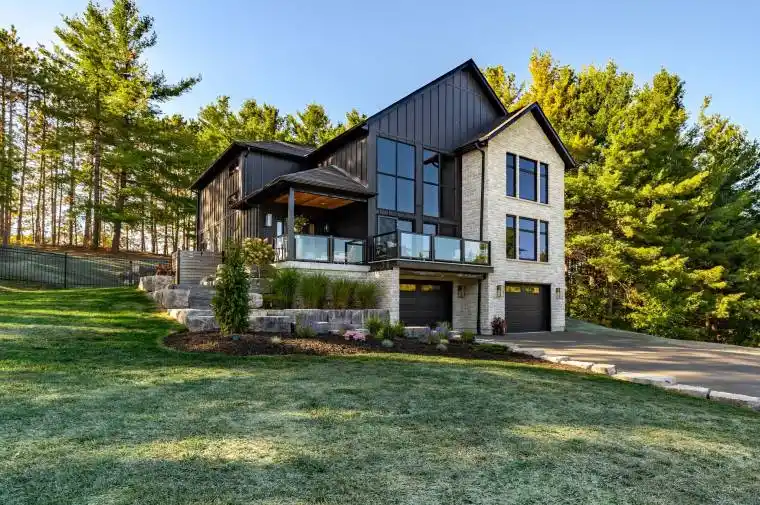 Welcome to a home that defines modern country luxury. Set on over a private acre, this architecturally striking residence combines timeless craftsmanship with todays most coveted finishes. Completed in 2022, the exterior makes an unforgettable first impression with its perfect balance of hand-cut stonework and board-and-batten siding, a design that blends rustic charm with sleek sophistication. Inside, every detail has been thoughtfully curated for those with discerning taste. The expansive, light-filled layout showcases 4 bedrooms and 3 bathrooms, offering an ideal balance of grandeur and comfort. Stone countertops throughout elevate the kitchen, baths, and laundry to a level of refinement rarely seen, while the chefs kitchen itself is a showpiece crafted for both gourmet entertaining and intimate family living.The open-concept main living space is anchored by soaring ceilings and breathtaking views of the surrounding landscape, making this home as inspiring as it is inviting. Each bedroom is designed as a private retreat, and the primary suite feels like a boutique hotel escape with spa-inspired finishes. Beyond the interiors, the property provides a rare opportunity for country living without compromise ample space for gardens, entertaining, or simply savouring the serenity of your own private estate.This home is more than just a place to live, its a statement of style, quality, and vision. For the client who expects nothing short of extraordinary, this property is a knockout in every sense of the word.