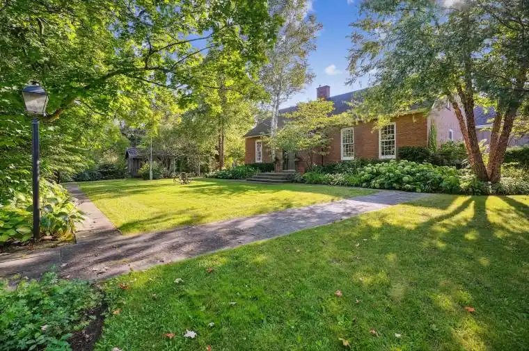 Soaring ceilings, spacious rooms, historic character, high-end finishes, and luxurious amenities. Built in 1870, this former schoolhouse has been lovingly renovated into a truly remarkable rural estate. The primary living room is bathed in natural light through the large updated windows. Wide plank pine floors complement the large wooden beams, freestanding propane stove and the soaring ceilings. Steps away, the centrally-located kitchen is truly the heart of this home; ideal for entertaining. Anchored with a true wood-burning fireplace and warmed by heated floors, the kitchen is a chef’s dream; complete with Wolf, Miele and Sub-Zero appliances and breathtaking white and black marble countertops. Down the hall, the great room is genuinely awe-inspiring. The vaulted ceiling soars over 24 feet, with large skylights inviting generous daylight into the sprawling room below. The room includes a mezzanine that offers a large open concept upper space and an enclosed room and ensuite bathroom below. The bedrooms of the home are together in a private wing off of the front living room. This wing is comprised of a shared bathroom, two bedrooms, and a spacious primary bedroom with lavish ensuite bathroom. Situated by itself above this wing is a large, private bedroom equipped with its own 3-piece ensuite bathroom – ideal as a guest/nanny suite. Additional opportunity exists above the large double garage, where a 660 sq ft insulated room awaits finishing as an in-law suite, rec room, home business office, etc. Stepping outside is like stepping into an English garden, finished with a hot tub, an in-ground saltwater pool, and beautiful brick and stone hardscaping. A screened-in gazebo is perfect for backyard dinners, and the fireplace in the double-sided chimney is ideal for cool fall evenings. The lush grounds are bordered by a handcrafted drystone wall and mature trees. Situated on a private 0.72 acre lot, this home is ideally located with easy access to the 401, 403 and more!