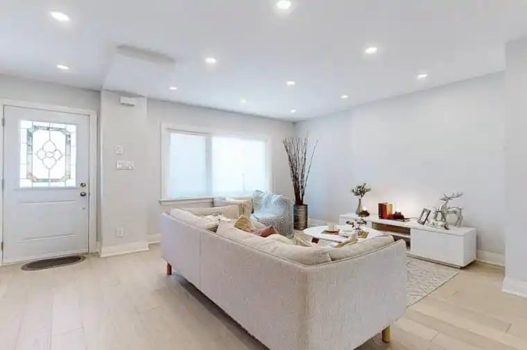 Welcome to this beautifully renovated semi-detached home in vibrant Danforth Village-East York! Thoughtfully redesigned, the open-concept living area flows seamlessly into a modern kitchen with stainless steel appliances, quartz countertops, and tranquil backyard views. The spacious breakfast/dining area is perfect for meals and entertaining. Bathed in light from new windows and potlights, this home features a new roof, durable flooring, an elegant glass staircase, and thermal front and side doors. Three fully renovated bedrooms include a primary suite with a luxurious 4-piece ensuite. The finished basement, with a separate entrance, offers a recreation room, den, and an additional 4-piece bathroom, ideal for extended family or guests. Exterior upgrades include new interlocking pavement (potentially eligible for a parking permit) and a large backyard perfect for gatherings, a potential tandem garage, or a garden suite for in-laws or rental income. Equipped with a newer furnace and tankless water heater rough-in, this home blends modern comfort with timeless appeal. The detached garage has been removed, maximizing backyard space for your vision, while retaining a designated parking spot for the owner.