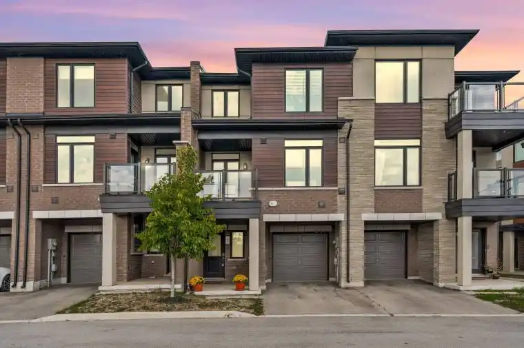 This rare freehold townhome offers nearly 1,300 sq. ft. of thoughtfully designed space in the sought-after Fifty Point / Community Beach area just a short walk to the lake and seconds to the QEW. Tucked into a friendly neighbourhood and surrounded by parks, trails, and the harbour, it blends convenience with a relaxed, recreational vibe. Inside, you’ll find a bright, open-concept main floor with soaring 9-foot ceilings, a practical layout, and tasteful finishes perfect for both everyday living and entertaining. The kitchen features a functional sit-up island, ample cabinet space, and stainless-steel appliances, opening seamlessly to a spacious dining area and a sun-filled living room. Step through sliding doors to a private balcony with unobstructed views ideal for morning coffee or evening BBQs. Upstairs features a spacious primary suite with a walk-in closet, a generous second bedroom, a stylish 4-piece bathroom, and laundry all on the same floor for ease of living. The ground level includes a rare oversized walk-in storage room, plus an inside-entry single car garage with automatic door and additional driveway parking. Low monthly fees cover visitor parking, common elements, and snow removal.