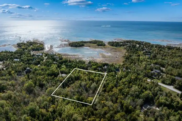 Fantastic opportunity to own a 1.1-acre partly cleared building lot just steps from the shores of Lake Huron! Located on a year-round municipal road, this well-located property features a driveway, septic system, and drilled well (as is) already in place. Enjoy nearby access to the water for swimming and more without paying the high price of direct waterfront. Public access point at Cove Rd. only a short walk away. Hydro is available at the road. Only 20 minutes from Lions Head and 10 minutes from Highway 6. Private, well-treed, and full of potential. Buyer to complete their own due diligence. Come see it before it’s gone!