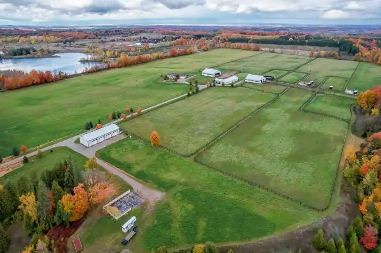 77 acres in the picturesque landscape of Mono, just north of HWY 9 & west of Airport Rd, you’ll find this property perfectly suited for Equestrian or Livestock Facility. The estate boasts an array of well-constructed buildings, including a spacious 3000+ sqft ranch bungalow featuring 4 bedrooms, 4 baths. Oversized 2-car garage provides ample space for vehicles. Main barn is equipped w/ 16 stalls, office, 2pc bath, and heated feed rm, along with a convenient 2-bedroom apartment attached to it. Two substantial 80×80 ft structures (6400 sqft each) are also on the property. One of these buildings accommodates 8 stalls, run-ins on the south side, and hay storage, while the other offers extensive round or square bale storage and a half run-in on the south side. Features 10 paddocks & 35 acres of high-quality hay fields, 4000 sqft implement building with 4 roll-up doors, each measuring 12′ x 14′. An ideal choice for equestrian enthusiasts and those seeking a tranquil rural lifestyle. **EXTRAS** Conveniently located, this property is a mere 50min drive to Woodbine, 14 min to Palgrave Equestrian Park, 40 min to Angelstone Tournaments & 40 min to Pearson International. The soil is sandy loam, ideal for various agricultural endeavors.