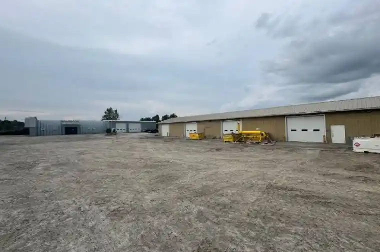 This property features two separate buildings plus outdoor storage, offering excellent flexibility for commercial or industrial users, with the option to lease together or separately. The first building is 5,400 square feet consisting of a 50′ 60′ insulated shop with an attached 40′ 60′ Quonset hut that was fully renovated in 2013 into modern office space. The shop offers a 16 ft clear height, two large drive-in doors (16′ 16′ and 12′ 16′), propane heat with natural gas now available on site, a concrete floor with trench drain leading to an exterior grease trap (serviced twice annually), 600V/400A electrical service, and a 2-pc washroom with well and septic services. The attached Quonset office provides two private offices, a reception area, open work area, washroom with separate shower, storage, and mezzanine storage upstairs all fully insulated, centrally heated, and air-conditioned. The second building totals 3,840 sq. ft. and consists of four bays (960 sq. ft. each) with 13 ft clear height, individual 12′ 12′ drive-in doors, propane-fired radiant tube heating, concrete floors, painted walls, and a durable metal roof. Secured with an electric gate and supporting outdoor storage, this property is ideally suited for auto repair, service operations, or a variety of light industrial businesses.