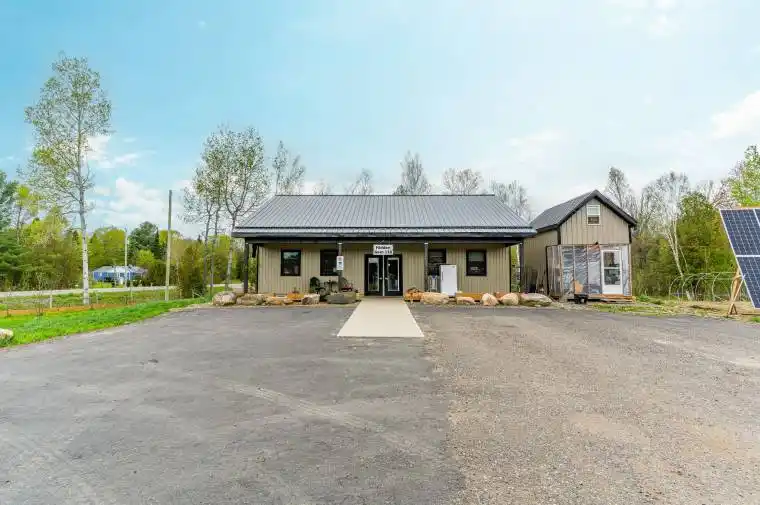 Have you ever dreamed of relocating to Haliburton County to start your own business or own a stunning piece of land? This 18-acre property offers a rare opportunity to turn that dream into a reality. Perfectly situated along one of the busiest highways in Haliburton County, a major route through the heart of central Ontario, this property provides exceptional visibility and access to endless possibilities. Custom-built in 2022, the 1,200-square-foot main building exudes rustic charm with its beautiful wood finishes, capturing the essence of cottage-country living. The property also features a large walk-in refrigerator (completed in 2024), a commercial kitchen, and a convenient laundry room. In addition, three cozy Bunkie’s provide guest accommodation or extra storage space. For those seeking to expand or diversify, the property is approved for the development of cabins, set around a tranquil 1-acre pond, perfect for year-round recreation whether it’s relaxing by the beach in summer or skating in the winter. The picturesque setting makes this property an ideal destination retreat. Beyond the buildings, the land itself offers even more value with its own array of natural resources. Enjoy the fruits of a diverse farm-to-table setup with fruit trees, berry bushes, wild leeks, honey from the on-site hives, tapped maple trees, and a fully functional chicken coop. These offerings present unique opportunities for sustainable agriculture or an added attraction for a business focused on local products. Fully customizable to meet your unique business needs, this expansive property offers ample space for growth, whether you’re looking to start a retail business, a resort, or any other entrepreneurial venture. The potential is limitless! Seize this rare opportunity to create something truly special in one of Ontario’s most scenic and sought-after locations.