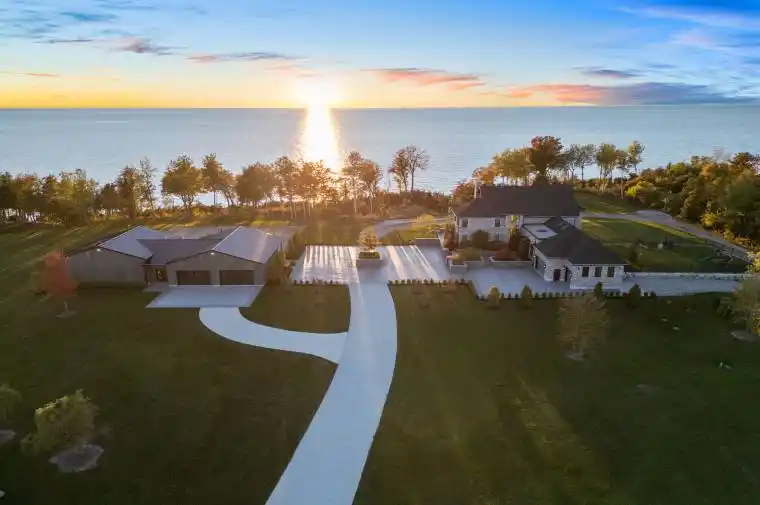 Indulge in luxury at this 13 acre Lake Huron estate, where meticulous craftsmanship and attention to detail converge to create an unparalleled retreat. The house boasts a main floor with two bedrooms, including a 3-piece en suite and a walkout to the patio/hot tub; complemented by an additional 2-piece bathroom, and lakeside windows offering breathtaking views. Enter the open-concept kitchen, dining, and living room; soaring to the ceiling of the second story, with second-level windows overlooking the lake; further enhanced by a butler’s pantry, grand piano, office, and laundry/mudroom. Ascend to the second level, where four bedrooms, each boasting lake views, await; accompanied by a 4-piece bath with heated floors. The primary bedroom stands as a sanctuary, featuring a self-contained laundry room, retractable TV, gas fireplace, and expansive walk-in closet with built-ins. Even more impressive is the 6-piece en suite, offering floor-to-ceiling windows, heated floors, a tub, a bidet toilet with a heated seat, and a shower that doubles as a steam room. The third level boasts a 3-piece bath, storage room, and a fully equipped bar; while the rooftop patio offers unparalleled views of Lake Huron. The basement, an entertainment haven, features four bunk beds, an entertaining/ games area, hockey shooting room, a 3-piece bath, bar area, wine room, and a theatre room. The guest house features two full-sized change rooms doubling as luxurious bathrooms, a commercial-sized gym fully equipped with top-of-the-line fitness amenities, and a separate living area with two double beds and bunk beds. The patio has composite decking, and offers views of the beach volleyball courts, Lake Huron, and the outdoor kitchen; while the garage provides ample space for vehicles or recreational toys. Two golf greens, a private road to the beach, and extreme erosion protection add to the appeal of this incredible property.