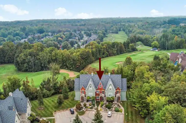 Licensed for Short-Term Rentals! This beautifully designed 2-bedroom, 2-bathroom upper-level condo is located in the sought-after Historic Snowbridge community at Blue Mountain Resort. With its established rental potential, this property offers an ideal opportunity for investors or those seeking a four-season getaway. Enjoy unobstructed golf course views from the private balcony, primary bedroom, and dining area, setting the scene for morning coffee or an evening glass of wine. The open-concept layout features soaring vaulted ceilings, oversized windows that flood the space with natural light, and a cozy gas fireplace for après-ski relaxation. The spacious primary suite includes a private 4-piece ensuite, while the second bedroom and full bath provide comfort for family and guests. This unit also features convenient in-suite laundry, a ski locker for secure storage, and access to a seasonal outdoor pool exclusively for owners and guests. With strong short-term rental demand in the Blue Mountain area, this property combines personal enjoyment with consistent income-generating potential. Owners and visitors alike will love the free resort shuttle offering direct access to Blue Mountain Village, ski hills, restaurants, shops, and nightlife. In summer, enjoy nearby private beaches, golf courses, and scenic hiking trails. Whether its skiing, hiking, relaxing, or entertaining, Historic Snowbridge is the ultimate four-season escape and a proven short-term rental investment.