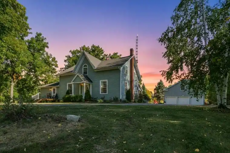 Welcome to this enchanting 1860s farmhouse, set on over 5 acres of private, park-like land just 30 minutes from Kingston. A long, tree-lined driveway leads to the charming 4-bedroom home, where original character blends seamlessly with modern updates. Inside, the main floor offers an inviting layout with a spacious kitchen, dining room, family room, laundry, and 2-pc bath. The main floor also features a versatile bonus room with a wood-burning fireplace currently used as the primary bedroom with ensuite, creating a cozy retreat. Upstairs you’ll find four bedrooms and a full bath, while the partially finished basement provides a rec room and generous storage. Enjoy economical year-round comfort with the updated geothermal heating and cooling system. Outside, a detached triple-car garage, landscaped gardens, and plenty of open space complete this enchanting property. Perfect for those seeking historic charm, modern comfort, and peaceful country living.
