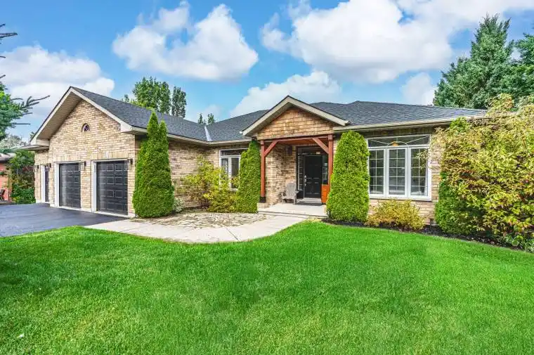 SOPHISTICATED HORSESHOE VALLEY RETREAT WITH OVER 3,750 FIN SQ FT, IN-LAW POTENTIAL, TRIPLE CAR GARAGE & PRIVATE LOT! Prestigious Horseshoe Valley living awaits in this extraordinary bungalow, steps from Horseshoe Resort and only minutes from golf courses, trails, tennis courts, and Vetta Nordic Spa. From the moment you arrive, the elegance is undeniable, with a brick exterior, updated shingles (2022), a covered porch featuring wood posts and beams, a triple-car garage with inside entry, and a driveway with parking for nine vehicles. The property itself is a private retreat, showcasing mature trees, manicured gardens, a patio with a pergola, a hot tub, a fire pit, a shed, and invisible dog fencing. Over 3,750 fin sq ft of exquisite living space is defined by hardwood floors, 14-ft ceilings, and open-concept principal rooms. The gourmet kitchen features white cabinetry topped with crown, stone countertops, an island with a sink, a bar area with a second sink and a beverage fridge, stainless steel appliances including a gas stove, and a walkout to the raised deck. A formal dining room enhances the hosting experience, while the living room is anchored by a stone-surround fireplace with a wood mantle. The primary suite is complete with a walk-in closet and a lavish 5-piece semi-ensuite presenting heated floors, dual sinks, and a glass-door walk-in shower with a bench. The impressive walkout basement continues to amaze with engineered hardwood floors, a double garden door walkout, expansive windows, pot lights, and a second kitchen with an electric induction cooktop, breakfast bar, and tile backsplash. Two additional bedrooms plus a den, a 4-piece bathroom with heated floors, and a massive recreation room create endless opportunities for family living or entertaining. The home also comes equipped with central vac. Designed for memorable gatherings, quiet moments, and everything in between, this Horseshoe Valley retreat is ready to be your forever #HomeToStay!