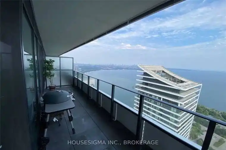 Stunning Corner Unit With Breathtaking Views of Lake Ontario and Downtown Toronto!Enjoy an expansive 800 .sq As Per Builders Plan. 400 sq .ft balcony wraparound balcony perfect for relaxing or entertaining finished with elegant custom tiles for style and durability. Exclusive upgrades include full custom shelving in every closet, oak wood hallway panels, a striking oak feature wall with integrated TV and electric fireplace, and a showpiece book-matched island with built-in cabinets and dining section. The master bedroom is enhanced with a sophisticated designer bed-frame wall, creating a true retreat. Residents enjoy exclusive access to the Sky Lounge, VIP elevator, cigar room, and premium guest suite. Prime location steps to the lake, parks, shopping, transit, and top schools.Buyer/Buyer’s Agent To Verify Measurements,