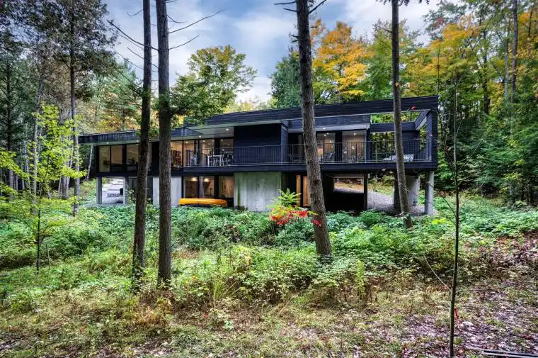 Stunning year-round home in a private and densely wooded setting located on Kennebec Lake. This modern and exceptional home sits on 2.8 acres of dramatic topography with trees, rocks and a gentle slope down to the waterfront with north-westerly views. The shoreline has a gradual entry into the water with a sandy bottom and is deep at the end of the dock for great swimming. The home was built in 2021 and attention to detail is seen throughout the house and outbuildings. Built on the lakeside of a rock ledge, the home has a partially exposed lower level with a level walkout. The main floor features a central common space containing the entry foyer, living room, kitchen and dining areas with the three bedrooms on this level located on either end of this space. The woodstove in the living room provides a warm and inviting atmosphere. There is a large deck that overlooks the lake with an amazing, covered barbecue station in the centre. The lower level features a spacious recreation room, bedroom, bathroom and utility area and a door leads to the lakeside yard. The house is clad in ship-lap western red cedar siding and has been designed with superior energy performance criteria with exceptionally high R-values for the standing seam roof, wall, and slab assemblies and airtightness considerations with the windows and doors Alumilex high-performance triple-glazed aluminum with argon filled IGU units with Dbl- low-E coatings. The 2-car detached garage sits up on the hill behind the house as well as a one-bedroom bunkie for extra guests. No expense has been spared with the design and build of this home. Kennebec Lake is a deep, clean lake located in Central Frontenac Township with easy access from Hwy 7. Fish species in the lake include walleye, pike and bass as well as various pan fish. Located approximately 3 hours from Toronto or 1.5 hours from Ottawa.