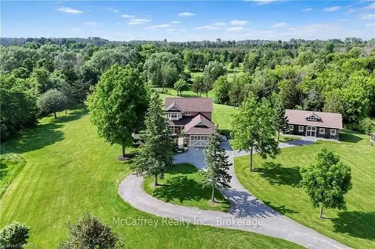 Charming 2 storey home that blends timeless elegance with modern comfort. Nestled on just over 15 pristine acres of manicured lawns and mature trees, this private sanctuary is more than a home, it’s an experience. Lots of driveway space and an attached 2 car garage offers convenience while maintaining the home’s aesthetic. Outdoor gatherings become unforgettable events on the expansive deck, with a gazebo and a woodfired pizza oven. The welcoming foyer offers warmth and love that has been meticulously infused into every corner. The bright, eat-in kitchen features modern updates that blend seamlessly with timeless touches. Step out through the side door onto the deck to the natural beauty of your surroundings. An elegant dining room, provides a seamless flow into the cozy living room with built-in bookshelves and an electric fireplace. A generously sized laundry room, with garage entrance and a well placed 2pc bath completes this level. Ascending the classic wooden staircase, you’ll discover two bright and airy bedrooms, each offering a tranquil escape. The shared 4pc bathroom serves these rooms with elegance and functionality. The Primary bedroom features a great sized walk-in closet and a 3pc ensuite, both enhanced by heated granite tile floors for added comfort. An unfinished basement, where boundless storage options and a perfectly situated cold room await your creative touch. Outside, the property unfolds further with an updated 24’x40′ insulated rustic barn that doubles as an ideal woodworking shop or more garage space. A delightful, fully functioning cottage that overlooks a tranquil stream meandering through the land. This quaint retreat could serve as a writer’s studio, guest house, or a serene spot for personal reflection. Every corner of this home, barn, cottage, and the idyllic surrounding property tells a story., a cherished haven for its original owners, who have created unforgettable memories here. Now it’s your turn to write the next chapter!