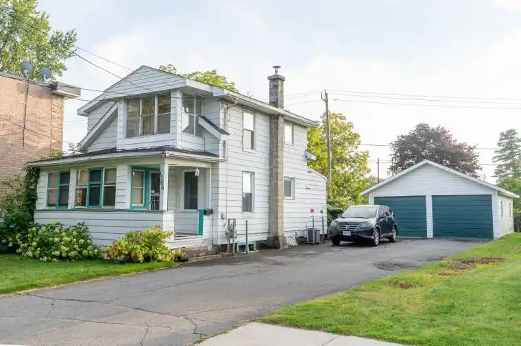Santa will fit down this chimney! Get settled-in here for the holidays. This charming 2-bed, 2-bath home has been lovingly cared for by just one family. Neat as a pin and move-in ready. It offers a compact footprint, everything you need, without the day-one expenses. The kitchen is loaded with cabinetry, the main floor features a practical 3-pc bath, laundry, and a bright sun porch. Upstairs, the primary bedroom also enjoys a sun porch, plus a full bath with a soaker tub. The upper level once served as an accessory apartment, and its versatile layout and components somewhat remain. Enjoy the comfort of forced-air gas heat, central A/C, a gas cook-stove, and all appliances included. Outside you’ll find a long double paved driveway, a spacious (powered) double detached garage, and a private fenced yard, ideal for a hobbyist. Modestly priced, centrally located, and available for immediate possession. Call it home. 24hr irrevocable.