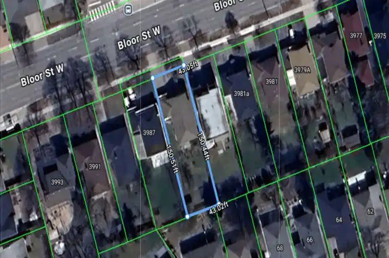 Prime development opportunity on Bloor St W with potential for a larger assembly. 3985 Bloor St W offers a 43 x 150 ft lot being sold as land only. With neighbouring sites also listed on MLS, with a potential for combined frontage of approximately 166.25 ft providing excellent scale and flexibility for redevelopment. A recently accepted City settlement now permits as-of-right mid-rise residential development on major streets, supporting boutique condominiums, townhomes, or apartment buildings up to 6 storeys. Featuring a wide right-of-way on Bloor, transit at the doorstep, and close proximity to Hwy 427 and Kipling Transit Hub, this location aligns with Torontos new housing policies and is well-suited for mid-rise development. Please do not walk the property or speak with occupants.
