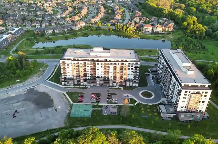 Gorgeous property located in the desirable Sunningdale community. This sixth floor one bedroom + one den model offers1080sqf living spaces plus 80sqf balcony with the great viewings of the pond and trail. Carpet free. Engineer hardwood throughout the unit. Contemporary style kitchen upgraded with quartz countertops, backsplash and powerful rangehood. Livingroom combined with dining area and fireplace. Spacious primary bedroom has large windows and walk-in closet. Two bathrooms upgraded as well. This unit owns one underground parking spot and MAIN level locker. Amenities such as Fitness room ,Golf simulator, Residence lounge, sports court and a guest suite are in this building. Close to Masonville Mall, UWO, hospital and public transit. It is suitable for the first-time buyers or young couples. You will love it.