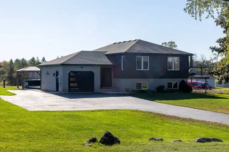 Welcome to 200050 Sideroad 10, Georgian Bluffs a raised bungalow on a beautiful 1.5-acre lot, offering country charm and outdoor living at its best. Enjoy summer days in your above-ground pool, relax on the spacious property, and take in the peace and privacy of rural living. Inside, the raised bungalow design fills the home with natural light. The main level features a functional kitchen with instant hot water tap, a dining space and living room, 3 well-sized bedrooms, with a cheater ensuite bathroom & heated towel bars. The lower level provides additional living space perfect for a recreational room, guest room or hobby space. The yard is ideal for entertaining, gardening, or play, this property offers something for everyone. Newly built (2023) 20×20 detached garage with a concrete floor. Siding, soffit and eavestrough 2021, Roof 2021, Boiler 2021, all doors replaced in 2023 including garage door. Located just minutes from Owen Sound, you’ll love the convenience of town amenities while still enjoying the quiet of Georgian Bluffs. This property is the perfect balance of comfort, recreation, and rural lifestyle ready for your next chapter.