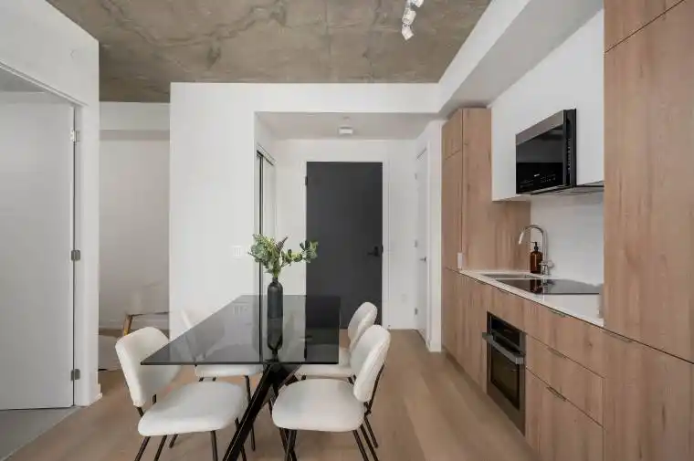 Modern urban living awaits at 28 Eastern, Corktowns newest boutique mid-rise. Experience a rare and highly functional layout in this brand-new, never-lived-in 1-bedroom plus den unit with two bathrooms. This home offers a perfect blend of style and practicality, ideal for anyone seeking a private guest space or a dedicated home office. The spacious, open-concept design is flooded with natural light from floor-to-ceiling, south-facing windows, while the elegantly upgraded bathrooms each feature a modern accent wall. Boasting a Walk Score of 95 and Transit and Bike Scores of 100, this location is unbeatable. You’re just minutes from incredible shopping, dining, and theatres, including St. Lawrence Market, the Distillery District, the Canary District, and the Waterfront. Commuting is a breeze with easy access to the Gardiner, the DVP, TTC service, and the future Corktown Subway Station. Locker available for purchase.