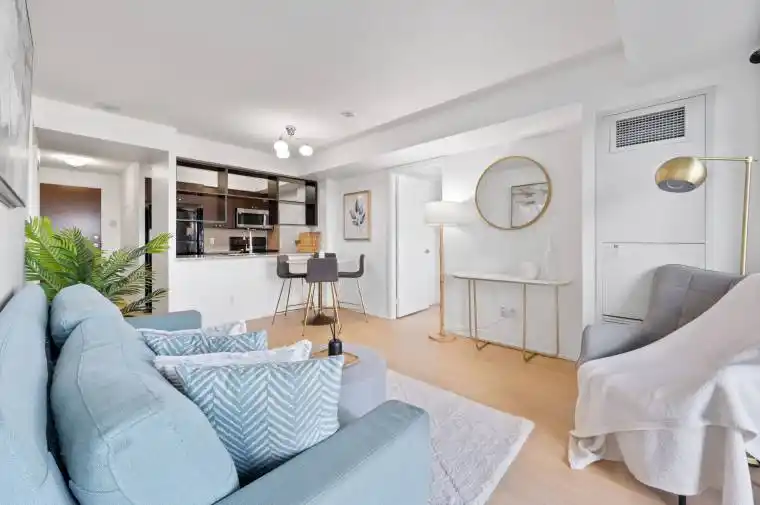 Bright & Spacious 2-Bedroom, 2-Bath Suite with unobstructed views overlooking the rooftop garden! Functional split-bedroom layout with open concept living/dining, modern kitchen featuring quartz counters, ceramic backsplash & breakfast bar. Spacious bedrooms with large windows, primary with 4-pc ensuite. Freshly painted with new waterproof laminate floors µwave move-in ready! Convenient parking beside elevator & locker right at entrance of locker room. Enjoy 24-hr concierge & security plus Club Vent us amenities: fitness centre, steam room, rooftop BBQ terrace, party/meeting rooms, billiards, media room, guest suites & visitor parking. Prime location with immediate 401 access minutes to downtown, Markham, Pickering. Walk to Kennedy Commons Mall, TTC at doorstep, and Agincourt GO nearby. Close to Schools & Day care services.