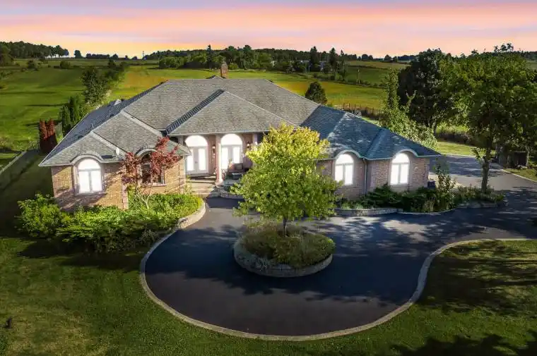 Discover an exceptional opportunity in one of Southern Ontario’s fastest-growing industrial corridors. This 12.37-acre single family property offers a rare combination of rural tranquility and prime development potential. Located directly across from the CN Logistics Hub and designated within the Future Strategic Employment Area (FSEA), its ideal for investors, developers, or businesses seeking strategic access to major transportation infrastructure. Nestled between Oakville and Burlington, the site enjoys excellent regional connectivity with easy access to Hwy401 and Hwy407. Surrounded by significant land holdings and future developments from Dundas Street to Britannia Road, the area is poised for transformation. Approved uses nearby include health and research facilities, long-term care, places of worship, automotive services, gas stations, institutions, and commercial buildings. Positioned between the planned expansion of Tremaine Road and Highway 25,the property offers unmatched visibility and access. Minutes from Milton’s university campus, the location benefits from proximity to educational infrastructure, enhancing its long-term value. The property features an expansive 8200+ sq ft bungalow with 9 bedrooms, including 3 master suites. High ceilings and abundant natural light create an open, airy ambiance throughout the home. Enjoy spacious living and family rooms, a wood pellet fireplace, and second unused chimney offering potential for a double-sided fireplace installation. The open-concept kitchen with center island flows into the living area, complemented by a stylish bar between the dining and family rooms perfect for entertaining. A sunroom overlooks the backyard and inground pool, offering a peaceful outdoor retreat. Additional features include multiple barns and outbuildings for storage or redevelopment, a separate basement entrance with newly renovated porcelain flooring 2025,and updated mechanicals including a new furnace and water heater 2022.