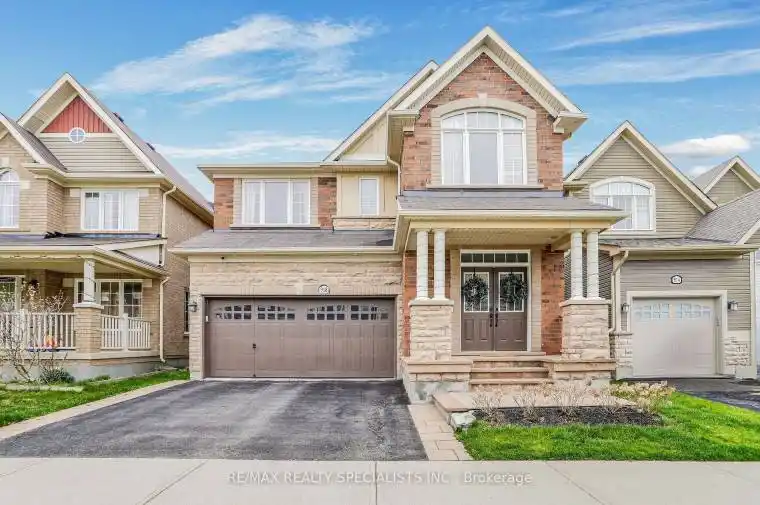 Just Beautiful! Upgraded throughout, From the foyer, look at the wood stairs with wrought iron spindles … this 4 bedroom, open concept home features 9 ft ceilings on the main floor. Family friendly neighborhood across for a large park. Professionally landscaped front yard with stone walkway and covered porch. Open concept main level features white oak engineered hardwood floors. LED Pot lights and an upgraded white kitchen with oversized island & quartz counters & Upgraded S/S appliances. Walkout to patio and a gas fire place in the private fenced yard. Open to the Great room with gas fireplace! Formal Dining room with hidden cabinets, can be used as a main floor den. The Second level features a spacious Primary bedroom with walk in closet and 5 piece bathroom. Three additional bedrooms and a second floor laundry room! Smooth ceilings throughout and engineered hardwood floors. Fully finished, (2022), lower level with high ceilings and LED pot lights. Laminate floor and a rough in for a bathroom. Updated mechanicals include; Water Heater in 2020, New A/C in 2022. Shows like a model!