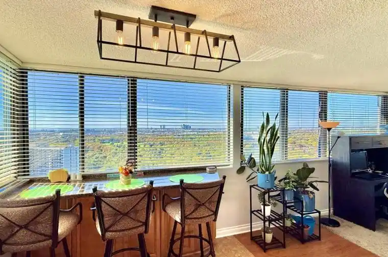 A “Bungalow in the Sky”! Welcome to this sun-filled 3+1 bedroom, 2 bath corner suite offering 1,300 sq.ft. of living space with spectacular unobstructed south, west and north views, including breathtaking sunsets and the downtown skyline. Comes with (2) Two parking spots! This spacious unit features a smart and functional floor plan with an expansive open-concept living/dining/solarium, granite kitchen counters/backsplash and breakfast area with panoramic windows. Large primary bedroom with walk-in closet and 3-pc ensuite. Ensuite laundry and ample storage. Maintenance fees include all utilities and cable TV. Building amenities: gym, outdoor pool, concierge, party/meeting rooms, games room and sauna. Steps to G. Ross Lord Park, trails, sports fields and TTC at your doorstep with direct access to Finch Station.