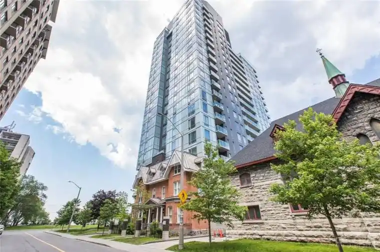 Welcome to Cathedral Hill! This luxurious and spacious 1-bedroom corner unit, approximately 798 square feet including the balcony, offers heated indoor parking and modern urban living at its best. The suite features hardwood floors throughout, a sleek kitchen with a large island and stainless steel appliances, and floor-to-ceiling windows that fill the space with natural light, creating an open and airy feel. The oversized balcony provides plenty of room for lounge seating and offers stunning views of the Ottawa River, city skyline, and Gatineau Hills.Cathedral Hill is a LEED-certified, environmentally friendly building with outstanding amenities including a party room with gas BBQ, fitness centre with sauna, yoga and exercise rooms, guest suite, concierge, pay-per-use electric vehicle charging stations, and 24-hour security. Perfectly located just steps from the LRT station and bike paths, commuting is simple and convenient no matter your destination. Available December 1, 2025 . One heated indoor parking space and storage locker included. No pets please.