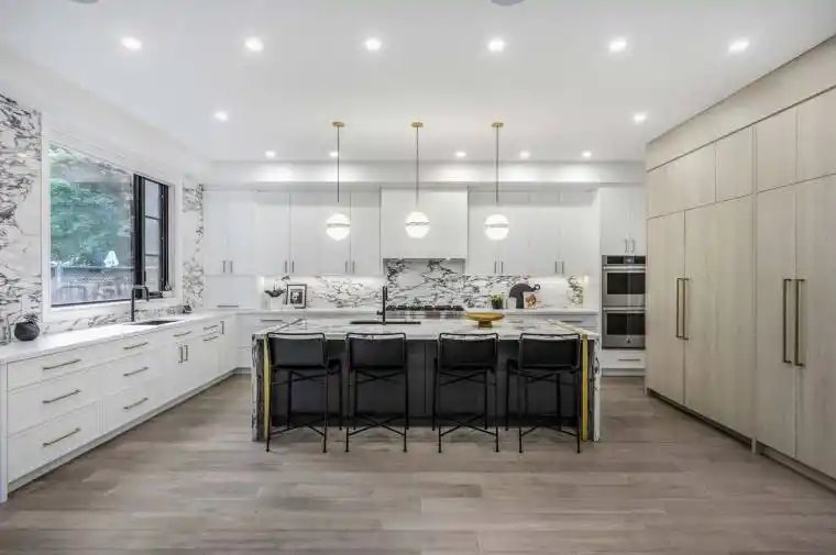 Welcome to 8 Manor Haven Road A Custom Home Across from the Park!This beautifully designed 4+1 bedroom, 6-bathroom home offers over 3500 sqft luxurious living in a prime family-friendly location. Designed by Shaun Lipsey, it features premium finishes and a thoughtful, functional layout throughout. The main floor features 10ft ceilings, pre-engineered hardwood floors, pot lights, and floor-to-ceiling inline windows that flood the home with natural light. Spacious principal rooms include a formal living room and a large separate dining room, ideal for entertaining. The chefs kitchen by California Kitchens is a true showstopper, equipped with top-of-the-line JennAir appliances, including a side-by-side fridge and freezer, two wall ovens, and a massive 10-ft island with ample seating. A dedicated prep space with drink fridge, paired with a huge walk-in pantry offer exceptional storage and prep space. The family room features a cozy fireplace framed by a stunning floor-to-ceiling granite feature wall, creating a dramatic and welcoming focal point.Upstairs, you’ll find four spacious bedrooms and three full bathrooms, including a primary retreat with a walk-in closet by Closets by Design and a spa-like ensuite with heated floors.The finished basement offers 1570 sqft includes a fifth bedroom, full bathroom, and a large open-concept rec space ideal for a home office, gym, or guest suite. A built-in bar adds flexibility for entertaining. Additional highlights include a heated mudroom, built-in Sonos surround sound, gas BBQ hookup, and a large private backyard. Located directly across from a park, this home delivers top-tier quality, comfort, and modern family living