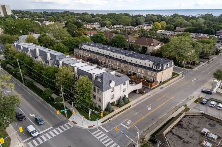 NEW, MASSIVE PRICE REDUCTION! Welcome to Village West a boutique enclave of upscale freehold townhomes set in Oakvilles downtown core. This rare end-unit feels more like a New York loft than a traditional townhouse. With soaring 12′ CEILINGS and loaded with huge windows throughout, the interior is defined by its sense of volume, openness and sunlight. Where every room feels generous in scale and effortlessly connected. From the moment you step inside, you’ll notice the proportions: expansive principal rooms, wide hallways, tall door thresholds, and wide staircases with oversized landings. The dining room is truly grand, while the adjoining kitchen and family room are framed by a dramatic, sky-high coffered ceiling. The kitchen has been FULLY RENOVATED, featuring high-end appliances, sleek finishes, and a layout designed for both everyday living and entertaining. Hardwood flooring runs throughout the home, complemented by TWO FIREPLACES and the convenience of a private ELEVATOR to every level. The double-car garage is oversized, providing not only secure parking but also ample room for storage. On the main level, a flexible office/sitting room overlooks the landscaped front and side gardens, where mature plantings and trees create privacy and a lush green outlook. On the third level, two very large bedrooms, each with its own ensuite, are generously proportioned making them a flexible space for various needs. The outdoor living is equally impressive. A 650 sq ft SOUTH FACING TERRACE offers a private retreat with enough room to entertain on a large scale or simply unwind in peace. The lower level extends the living space even further, perfect for a home gym, office, media room, or whatever suits your needs best. Village West is as practical as it is refined. This enclave is beautifully maintained, with a welcoming atmosphere and neighbours who take pride in their homes. Desirable location just steps to downtown Oakvilles shops, dining and the lakefront parks.