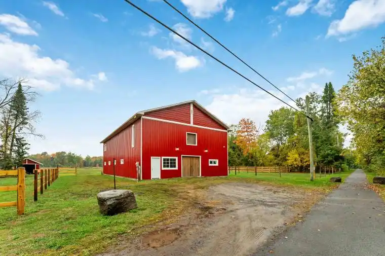 An exceptional opportunity for equestrian professionals to elevate their business. This fully equipped 65 x 40 premium stable is designed for trainers, horse owners, and equine therapy operators seeking a turnkey facility that blends functionality with comfort. The main stable features seven spacious stalls each with water, a window, fan, and power outlet along with a wash bay equipped with a pressure washer and swing arm, tack and feed rooms, a bathroom, and security cameras for peace of mind. The second floor offers a large hay storage area, two modern washrooms with custom showers, an office for daily management, and a spacious boardroom complete with a lounge area, large table, and wet bar An exceptional opportunity for equestrian professionals to elevate their business. This fully equipped 65 x 40 premium stable is designed for trainers, horse owners, and equine therapy operators seeking a turnkey facility that blends functionality with comfort. The main stable features seven spacious stalls each with water, a window, fan, and power outlet along with a wash bay equipped with a pressure washer and swing arm, tack and feed rooms, a bathroom, and security cameras for peace of mind. The second floor offers a large hay storage area, two modern washrooms with custom showers, an office for daily management, and a spacious boardroom complete with a lounge area, large table, and wet bar ideal for meetings or events. Located in Greely, this property is perfect for someone ready to take their equestrian operation to the next level. Ideal for meetings or events. Located in Greely, this property is perfect for someone ready to take their equestrian operation to the next level.