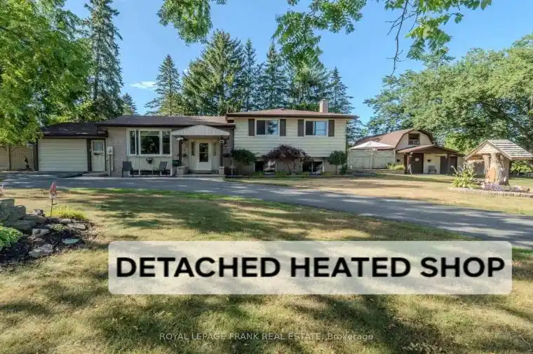 LIVE, PLAY & WORK @ HOME! CHECK OUT THE 2 STOREY HEATED SHOP! This beautifully treed property offers the perfect blend of peace and convenience – just 5 minutes to downtown Peterborough & quick access to Hwy 115. Step inside this spacious 4-level side split featuring 3+1 bedrooms and 2 bathrooms, ideal for growing families or multigenerational living. The heart of the home is a charming, updated farmhouse-style eat-in kitchen, where memories are made over shared meals and warm conversation. You’ll love the gleaming hardwood floors on the main and upper levels, while the finished lower-level rec room with a cozy gas fireplace and bar is perfect for movie nights, game days, or holiday entertaining. With direct garage access to the basement, there’s excellent potential for an in-law suite. Enjoy the sunroom or hang outback, your fully fenced backyard oasis invites relaxation and fun – swim in the pool, unwind in the hot tub, or fire up the smoker for weekend BBQs. Need room for hobbies, tools, or toys? You’ve got it – an attached garage plus a large, heated two-storey detached workshop with 60-amp service gives you all the space you need. 200 Amp main service. This is more than a home – its a lifestyle.