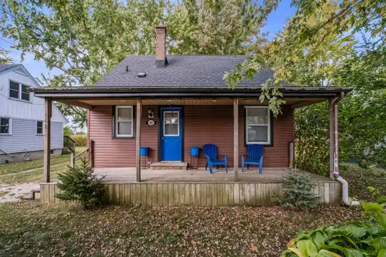 Looking for that affordable house for your first purchase? This well-maintained 2-bedroom house could be what you have been looking for. Newer windows throughout. Efficient gas heat. Gleaming hardwood floors. Inviting front verandah to enjoy your morning beverage. Rear deck overlooking open fields. Beautiful mature majestic trees surrounding this home. Full basement for additional living space or storage. All appliances included, and some furnishings could be purchased. Great location situated in Huron Park, just 10 minutes from Exeter, 30 minutes North of London, 20 minutes to Lake Huron beaches. Just a 5-minute walk to a newly refurbished arena and full-service convenience store with beer and wine sales. Property is on a leased lot for cost-effective home ownership. Call the listing agents for lot lease details.