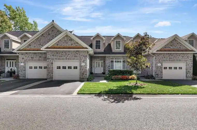 Welcome to 24 Gracefield Lane, where refined living meets the tranquility of waterfront life. Nestled in the highly sought-after community of St. James By The Bay, this stone townhome offers more than just a place to live, it’s a lifestyle. Imagine waking up each morning in a serene enclave designed for adults who value comfort, connection, and ease. Step inside to over 1,800 sq ft above grade, thoughtfully designed with soaring ceilings, rich hardwood and ceramic floors, and an open-concept main level that seamlessly blends dining, entertaining, and everyday living. The kitchen has been refreshed with quartz countertops and stainless-steel appliances, while the living room walks out to a private deck overlooking lush green space, perfect for enjoying coffee in the morning sun or evening wine under the awning. Upstairs, retreat to a spacious primary suite complete with walk-in closet, spa-like ensuite, and a flexible loft space that could double as a cozy den, library, or TV lounge. The finished lower level extends your living area with a bright recreation room, guest bedroom, and full bath ideal for hosting friends and family. Beyond your door, discover manicured gardens, water features, and inviting common spaces where neighbours gather and friendships thrive. This adult lifestyle community is built around ease, offering waterfront access on the Bay of Quinte and a unique Right-To-Occupy ownership model that ensures a worry-free living experience. 24 Gracefield Lane isn’t just a home its an invitation to slow down, enjoy, and truly live by the bay.