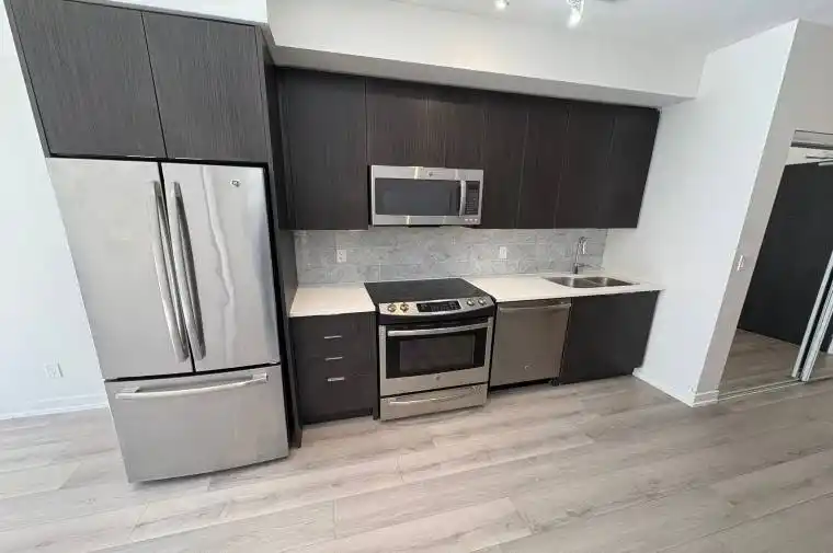 Enjoy Life by the Lake at The Local Condominiums! This bright 1-bedroom + den suite features an open-concept layout with laminate flooring throughout and a walk-out to a large private balcony. The modern kitchen boasts stainless steel appliances and tall cabinetry. The primary bedroom offers floor-to-ceiling windows and a walk-in closet, while the den provides the perfect space for a second bedroom or home office. A sleek 4-piece bath completes this stylish suite. Close to shopping, transit, and major highways everything you need is within reach! Step outside and find yourself moments from the Harbourfront, Fort York, and the vibrant Stackt Market. Everyday essentials are right at your doorstep with Loblaws, Shoppers Drug Mart, and the TTC streetcar nearby, while King Wests exciting nightlife and scenic waterfront trails are just minutes away.