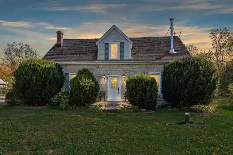 Welcome to this charming 1 1/2- Storey limestone homestead set on over 26 acres of beautifully maintained property with manicured trails. This picturesque setting offers the perfect blend of country living and outdoor adventure. The property is well-equipped with a 4-stall barn. limestone garden shed, fenced paddock, and fenced dog run-ideal for hobby farmers, nature lovers, or those seeking privacy and tranquility. Inside, the home features a traditional formal layout highlighted by solid pine floors and the timeless character of deep window sills. Sit in your favorite chair and warm yourself by the freestanding stove. The spacious, country-style eat-in kitchen with cupboard space to spare, opens to a deck with a retractable awning-perfect for enjoying peaceful morning coffee or evening sunsets. Although now overgrown, with some TLC to clear bush, the deck opens up to a second deck surrounding a once beautiful water garden. Large windows fill the home with natural light, and the exposed limestone wall in the primary bedroom adds a touch of rustic elegance. A true country retreat, just a short drive to city convenience- this unique property offers the best of both worlds