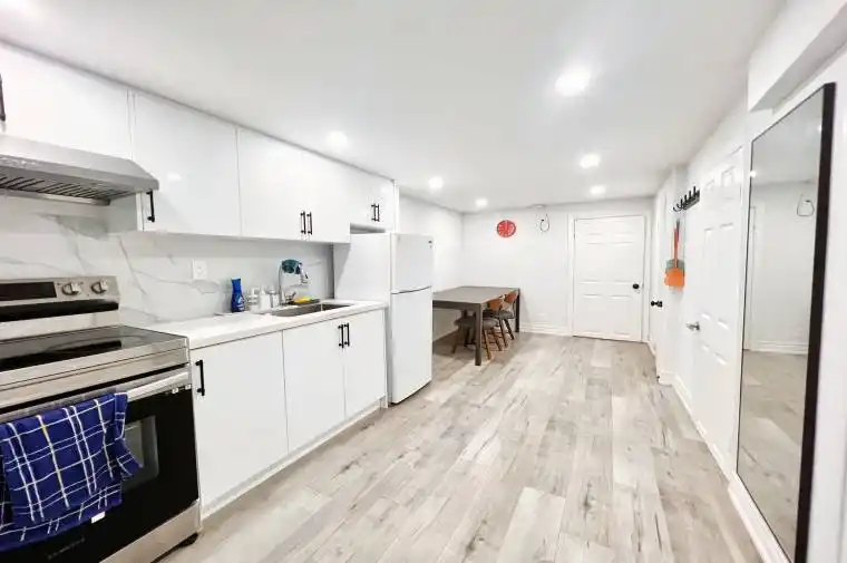 Newly renovated 2 bedrooms basement apartment. Laminate floor throughout, fully furnished, great location with best schools. separate entrance and new laundry. One driveway parking is included. Tenant pays 1/3 of total utilities.