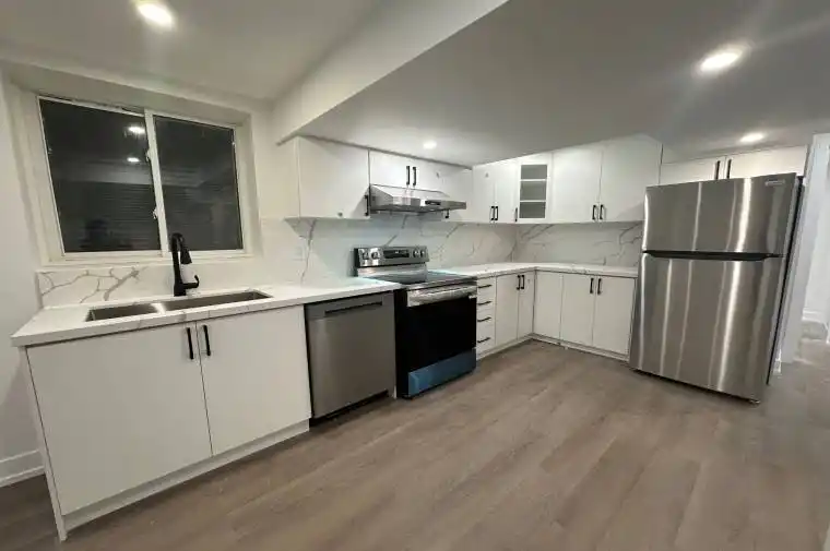 One of a kind…Exceptional brand-new never-lived Walkup legal 2-bedroom basement apartment! The only one w separate heating & cooling controls!!! WoW.. no more too cold or too warm! You control your own apt temperature. Fancy finishes.. More like a luxury condo apt, not a basement. Very bright and warm with extra insulation for weather and soundproofing. Modern functional layout. High-end vinyl planks, modern spacious white Kitchen with plenty of cabinet and counter space. High-end SS appliances ( fridge, electric stove, range hood, and dishwasher as well as front-load full-capacity washer and dryer), quartz counter tops, & custom backsplash. Luxury dimmable LED spotlights. Extra comfort living is provided by enhanced insulation for sound and weatherproofing, as well as the Walkup, which offers loads of sunlight and access to the apartment. Open concept living & dining. Custom Zebra blinds. Spacious bedrooms with mirrored closets and large windows. Private laundry room. Plenty of storage like nowhere else: linen cabinet, coat closet, under-the-stairs storage. Spa-like heated bathroom with glass shower and modern vanity. Excellent location w designated spacious parking and a separate entrance with led floor spotlights and a paved stone walkway to your unit/ suite!!! No effort or money was spared in luxury and comfort. Close to great elementary and secondary schools, transit, shopping, and parks. Close to HWYs for easy commuting. Few walking steps to the Bus Stop… Won’t last, can’t Get Any Better! Must See!