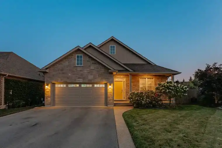 Welcome to 3985 Lower Coach Road, a beautifully maintained open-concept bungalow set on a large reverse pie-shaped lot in one of Stevensvilles most coveted neighbourhoods. Built in 2017, this 4-bedroom, 3-bathroom home combines modern finishes with functional design, perfect for todays lifestyle. Step inside to a bright and inviting open-concept layout with engineered hardwood floors, where the living room flows seamlessly into the dining area and kitchen, adorn with custom California shutters, a built-in speaker system that plays inside and out, as well as crystal light fixtures. The kitchen features granite countertops with an 8 foot long island with a built-in wine rack, a large pantry, 24 inch tile floors, and a granite sink. Off of the back of the home, walkout french doors open up to a sprawling deck that runs the full length of the home (2019), perfect for entertaining or enjoying the lush, fully fenced backyard with its mature perennial gardens, and large garden sheds. The main floor offers two spacious bedrooms, as well as a second full 4-piece bathroom. The primary suite includes a private 3-piece ensuite and walk-in closet. Convenient main floor laundry adds everyday ease, while an attached 2-car insulated garage with an insulated automatic door, and double-wide driveway provide parking for up to 6 vehicles. The fully finished basement expands your living space with two additional large bedrooms, a 3-piece bathroom, and a generous rec room anchored by a cozy gas fireplace. A large storage room provides plenty of space for organization and practicality. With thoughtful details, a desirable location, and a balance of comfort and style, this home is move-in ready and perfectly suited for families, down sizers, or anyone seeking space and quality in Stevensville.