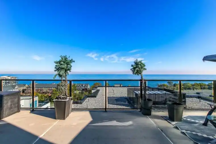 Welcome to this stunning 8th floor suite in the heart of Grimsby on the Lake. With panoramic views of Lake Ontario & the Toronto skyline. This stylish condo offers a luxurious lakeside lifestyle. This stylishly designed unit features two parking spots and two storage lockers. 9 ft ceilings & Open-concept in the combined living/dining/kitchen filled with natural light & panoramic views of lake Ontario, remote-controlled blinds, quartz countertops, stainless steel appliances & windows floor to ceiling. The primary bedroom features walk in closet, exquisite 5 pc bath ensuite with a separate glass shower and a stand alone bathtub, there’s also a private balcony off of the primary bedroom. A second full 4 pc bathroom for convenience for the 2nd bedroom & guests. The amenities are at your doorstep to enjoy such as heated outdoor pool, beautiful outdoor BBQ area, gym, party room, media room & games room, gorgeous and very well kept grounds. 2 mins to QEW & steps from shops & restaurants!