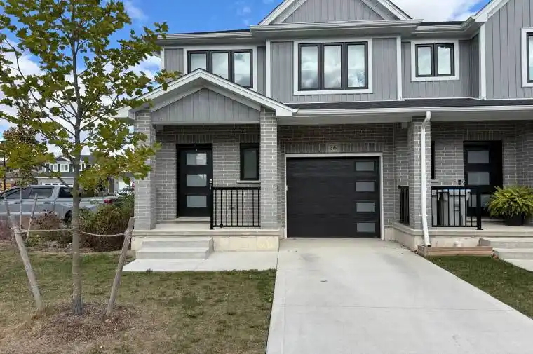 Welcome to 26-17 Nicholson Street, located in the sought-after Ridge Landing Subdivision in Lucan, Ontario. This home offers 1,560 sq. ft. of thoughtfully designed living space situated in a prime location that boasts a wealth of features that make it the perfect place to call yours. This 3 bedroom, 3 bathroom freehold condo offers plenty of space for a growing family, and features luxury vinyl plank flooring throughout. The open concept main floor includes a living room, dining area, powder room and kitchen, complete with quartz countertops, subway tile backsplash, under cabinet lighting and stainless steel appliances. Downstairs you will find a finished basement that has plenty of space for a play room, extra recreation room or storage. The second level features the primary suite that is complete with a walk-in closet and 3-piece ensuite bathroom, along with two additional spacious bedrooms and another 4-piece bathroom. With a sought after location that is close to schools, parks and only a 15 minute drive from north London, don’t miss out on your chance to make this units yours! Enjoy low-maintenance living with a monthly condo fee that covers common area management, insurance, snow removal, lawn care, and street lighting.