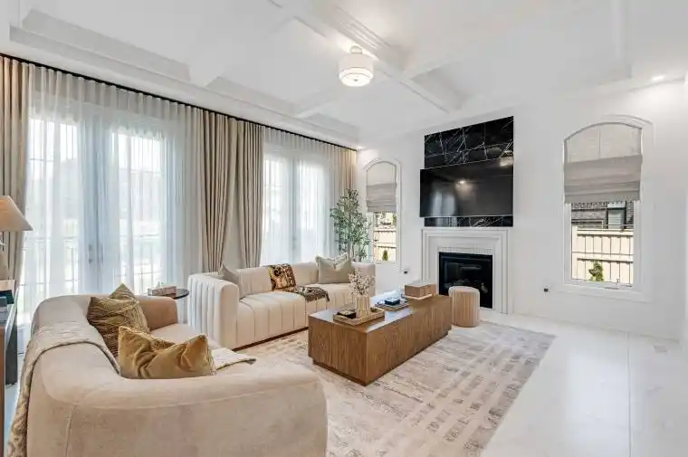All Furniture Included in this stunning, fully renovated luxury residence built by Fandor Homes in 2023. Set in one of Nobletons most desirable communities, this executive home offers approximately 3,750 square feet of elevated living space with five spacious bedrooms and five beautifully appointed bathrooms. From the moment you step inside, youre met with an uncompromising level of quality, craftsmanship, and attention to detail.The main floor features soaring 10-foot ceilings, smooth finishes, open riser stairs, designer wall paneling, and engineered hardwood flooring throughout. The heart of the home is the custom chefs kitchen, complete with fluted cabinetry, a dramatic range hood, premium paneled appliances, a Wolf induction cooktop, a waterfall quartz island, and an integrated servery all finished with exquisite marble herringbone backsplash and open shelving. The family room offers a custom fireplace framed by a waffle ceiling, while the formal dining area is enhanced by a coffered ceiling and designer wallpaper, creating an atmosphere of refined elegance. A custom-built library adds a timeless, functional touch to the main floor layout.Upstairs, nine-foot ceilings carry through to five generous bedrooms, each finished with custom blackout blinds and designer wallcoverings. The primary suite includes walk-in closet and a spa-inspired ensuite that exudes luxury. Every bathroom features upgraded tile work, quartz finishes. pot lights throughout, 24-inch tile in the foyer and kitchen, custom drapery and Roman shades, and smooth ceilings across both levels.Outside, enjoy a professionally landscaped backyard oasis featuring a custom concrete patio, pergola, and built-in hot tub perfect for relaxing or entertaining. With no sidewalk, the extra-long driveway comfortably fits four vehicles. This exceptional property offers an unmatched blend of luxury, comfort, and design in a premium location. Truly turnkey and one-of-a-kind a rare offering in todays market.