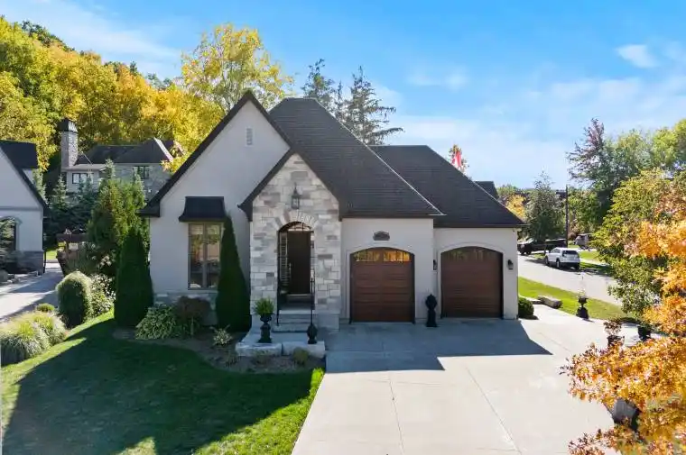Situated on prestigious David Lowrey Court, beneath the breathtaking Niagara Escarpment, this exceptional custom-built Gatta Homes bungalow offers over 3,100 sq. ft. of refined living space with impeccable craftsmanship and timeless sophistication.Upon entry, an elegant formal living room welcomes you with coffered ceilings and serene garden views-an inviting space that sets the tone for the home’s refined design. Beyond, the open-concept great room impresses with vaulted ceilings, skylights, and floor-to-ceiling windows that bathe the space in natural light. Anchored by a sleek gas fireplace, this area flows effortlessly into the chef’s kitchen, appointed with Cambria and Caesarstone countertops, bespoke cabinetry, premium appliances, and a generous island perfect for entertaining. From here, sliding glass doors open to a spacious screened lanai, offering a seamless transition between indoor and outdoor living-ideal for relaxed evenings or summer gatherings.The primary suite is a true retreat featuring a five-piece spa-inspired ensuite, walk-in closet, and a second private screened lanai overlooking lush gardens. A second main-floor bedroom with ensuite bath, a powder room, and a stylish mudroom/laundry area with custom built-ins complete the main level.An elegant glass railing leads to the finished lower level, designed for versatility and comfort with a spacious recreation room, home office, two additional bedrooms, and a full bath.Set on a private 74′ x 154′ lot, the exterior showcases mature trees, manicured gardens, and a low-maintenance Trex deck perfect for outdoor entertaining. Additional highlights include heated bathroom floors, air exchanger with HEPA filtration, covered eaves, a two-car garage with lift for a third vehicle, and a circular concrete driveway with parking for five. Located just minutes from Old Town Niagara-on-the-Lake, award-winning wineries, golf, and the QEW, this residence epitomizes Niagara luxury living at its finest.