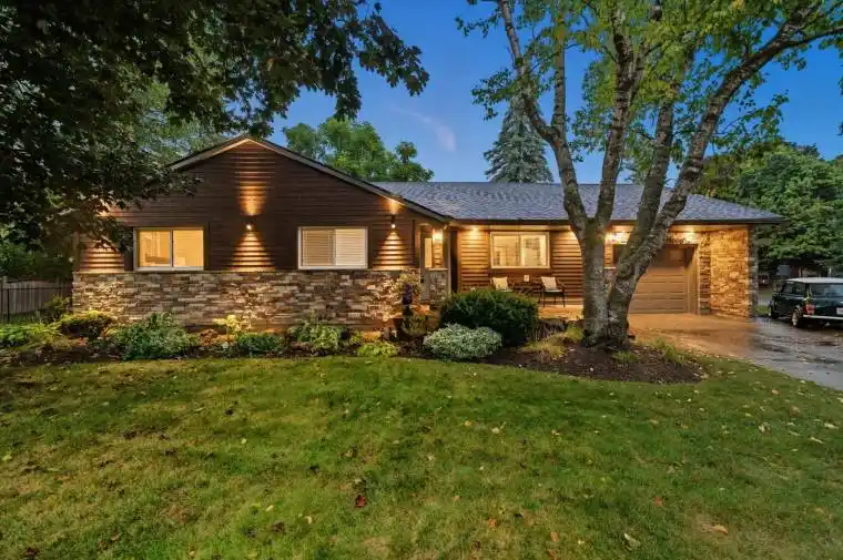 Situated in Newmarkets coveted downtown district, this meticulously renovated bungalow offers a rare opportunity on a premium lot with no neighbouring homes on either side. Set well back from the street and enhanced by striking updated wood siding, the residence delivers both curb appeal and privacy. The main level presents a sophisticated open-concept design, seamlessly integrating the living, dining, and kitchen areas. Smooth ceilings and 3/4 inch hardwood flooring flow throughout, creating a refined, cohesive aesthetic. Two well-proportioned bedrooms include a primary suite with a luxurious four-piece ensuite and a custom-fitted walk-in closet. The fully finished lower level extends the living space with two additional bedrooms, a generous recreation room, and a dedicated laundry area. Luxury vinyl plank flooring adds durability and style, while a spa-inspired bathroom with a separate soaker tub offers an indulgent retreat. Comprehensive updates completed in 2016 include the roof, windows, hot water tank, and full interior renovations, ensuring modern comfort and efficiency. An oversized single-car garage and an extended driveway provide ample parking and storage. The backyard is equally impressive, featuring a wide, private setting, large deck, mature trees and ample green space perfect for outdoor entertaining, gardening, or simply relaxing in a tranquil, park-like environment. Ideally located within walking distance to Main Streets boutique shops, fine dining, and everyday amenities, this residence combines timeless style, quality craftsmanship, and a premier setting for a truly turnkey lifestyle.