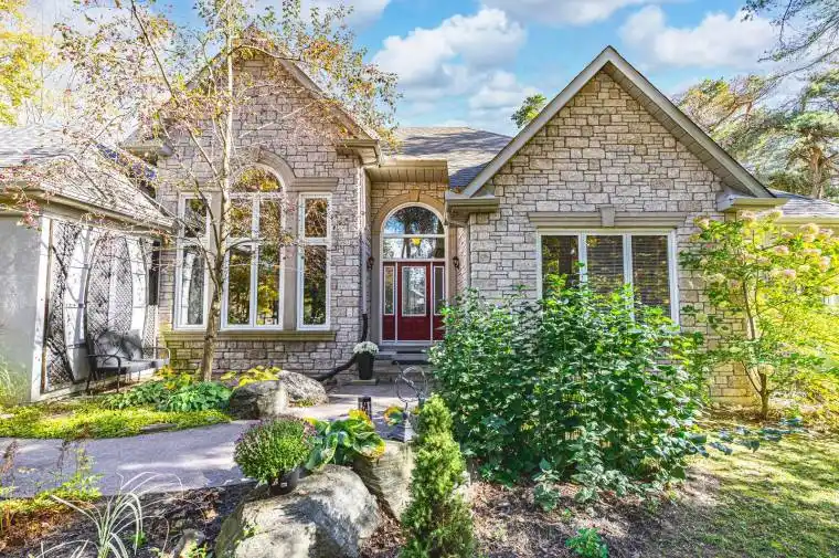 DISTINGUISHED HORSESHOE HIGHLANDS ESTATE ON A SERENE CUL-DE-SAC SETTING! Nestled on a quiet cul-de-sac in the prestigious Horseshoe Highlands, this elegant home offers over 3,650 finished sq ft of timeless style and thoughtful design, backing onto a former golf course surrounded by mature trees and manicured gardens. Sunlight fills every corner of the open-concept layout, where large windows, rounded corners, and refined lighting create an atmosphere of understated luxury. The bright kitchen features wood cabinetry, stainless steel appliances, a gas cooktop, a breakfast bar, and a breakfast area overlooking the yard. A formal dining room with soaring ceilings and dramatic arched windows creates a stunning backdrop for elegant gatherings, while the sunken family room with a tray ceiling and gas fireplace, and the living room with a wood-burning fireplace and wet bar, offer warm and inviting spaces to unwind. The primary suite feels like a private retreat with dual walk-in closets, a five-piece ensuite featuring a dual-sink vanity, a glass-walled shower, a soaker tub, and a walkout to its own secluded deck through double garden doors. Two additional bedrooms share a stylish three-piece bath, while a convenient main-floor laundry adds everyday ease. The partially finished lower level offers a generous recreation room, office, wine cellar, and three-piece bath, providing versatility for any lifestyle. Outdoors, a fully fenced yard with two decks, including one featuring dual pergolas, is framed by lush landscaping, vibrant gardens, and vegetable beds. A double-car garage with inside entry and driveway parking for up to ten vehicles completes this exceptional property. Perfectly positioned within minutes of the new elementary school, community centre, medical clinic, park, and tennis courts, and under 20 minutes from Barrie’s RVH and Georgian College, with year-round recreation close at hand, including skiing, golf, hiking, and Vetta Nordic Spa.