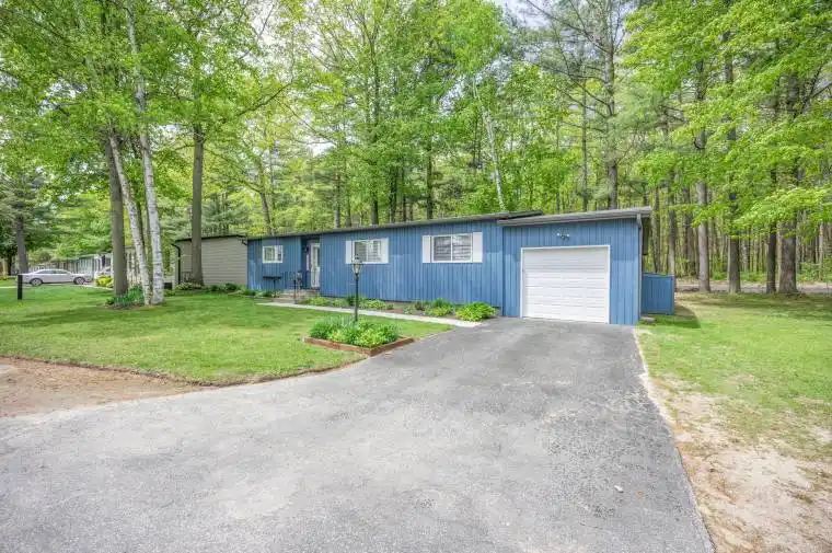 Stylishly Updated Bungalow in 55+ Parkbridge Community – Wasaga Beach Welcome to 10 Allen Dr N in Hometown, a sought-after 55+ Parkbridge land-lease community just minutes from the beach. This bright, open-concept bungalow offers seamless flow between living, dining, and kitchen areas, featuring hardwood floors, a cozy gas fireplace, and walkout to a private deck. Modern kitchen with island, beverage fridge, and ample storage. Spacious primary with double closets and 3-pc ensuite with soaker tub; second bedroom includes Murphy bed and storage. Two updated baths with glass shower. Recent upgrades: vinyl siding (2021), gas furnace (2020), newer windows/doors, gutter guards, stackable laundry, and garage with storage. Enjoy clubhouse, saltwater pool, 9-hole golf, and walking trails. Approx. monthly fees for new owner: Land Lease $725 | Tax (Site) $35.49 | Tax (Home) $82.07 = $842.50 total