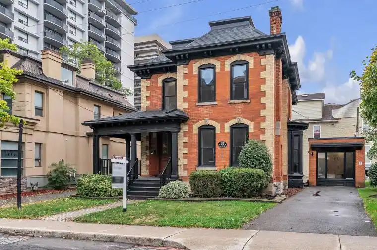 Welcome to 203 MacNab Street South! Originally constructed and occupied in 1877 by the Hamilton Real Estate Association, this beautiful building has been meticulously maintained, preserving its historic features while thoughtfully updating its functional elements. 203 MacNab Street offers 7 distinct office spaces, ranging from 145-190 square feet. Additional amenities include a well-equipped kitchen on the main floor, an additional kitchen on the second floor, and 4 bathrooms (two per floor, including two half-baths and two full-baths). The entire building is equipped with heating and air conditioning, ensuring comfort year-round. The monthly rent for this office is all-inclusive, covering high-speed internet, utilities, and weekly cleaning of common areas. This office also includes a beautiful fireplace, large, West-facing windows, and new carpet tile flooring as of July 2025. Dedicated parking spaces are available for purchase at $100/month. Standard lease term offered is 1 year, with a flexible 90-day exit option that can be initiated by either party. Whole floors available for lease as well for larger operators.