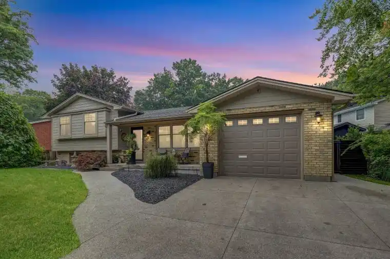 Welcome to 63 Park Lane Crescent, London, Ontario. This beautifully updated 4-bedroom, 1.5-bath side split with an attached garage has been meticulously maintained inside and out, where pride of ownership shines in every detail. Completely renovated and professionally designed, this truly is a move-in ready home with incredible features throughout. From the moment you arrive, the curb appeal sets the tone. A concrete oversized double driveway leads to a charming front path and inviting porch, perfect for morning coffee under the retractable awning. Step inside and immediately feel at home in the bright, open-concept main floor. Gleaming Luxury Vinyl (LVP) floors flow throughout, complemented by tile in the bathrooms. The spacious living room features a cozy fireplace, while the chef-inspired kitchen offers an island, gas stove, pot filler, granite countertops, and seamless flow for entertaining. Up a few short steps, you’ll find three generously sized bedrooms and a beautifully designed main bathroom that feels like a spa retreat. Just steps down from the main level is a comfortable family room with a wood-burning fireplace, a fourth bedroom, and a convenient 2-piece bath. The lower level offers even more versatility with a den/office and a laundry/utility room. Outdoor living is just as impressive. A bonus entertainment room with a bar and backyard access makes gatherings effortless. The private backyard oasis is designed for relaxation and fun, featuring an above-ground pool, a concrete patio for lounging and dining, and two sheds, one powered and perfect for storage or hobbies, the other ideal for pool supplies. Lets not forget the oversized one car garage, more than just a place to park your car, its fully insulated, heated, cooled, and even equipped with a water hookup, making it the perfect workshop or hobby space. Every detail has been thoughtfully designed, inside and out, so you can move right in and enjoy the lifestyle this exceptional property offers.